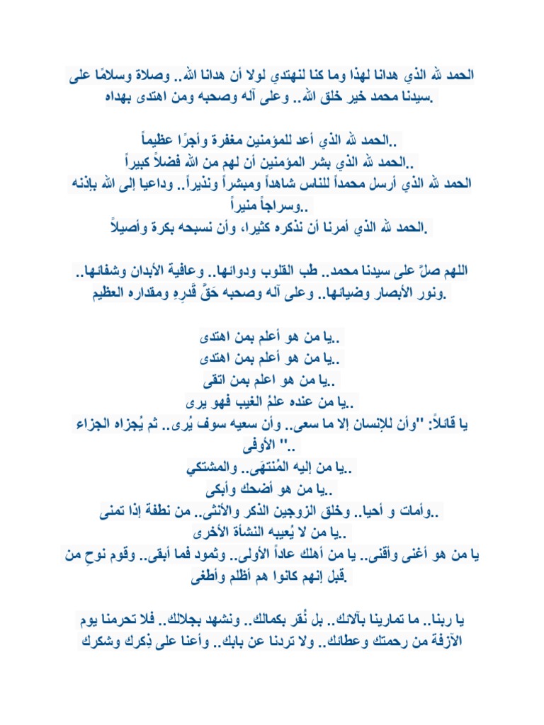 اللهم لك الحمد كما ينبغي لجلال وجهك وعظيم سلطانك الحمد لله