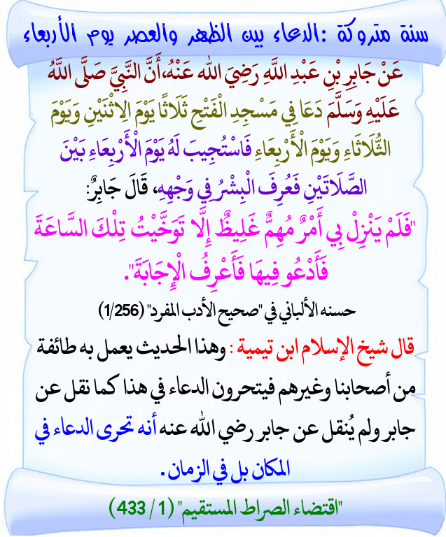 احمد التركي On Twitter من سنن يوم الأربعاء والغير معروفة استجابة الدعاء بين صلاة الظهر والعصر لحديث جابر بن عبدالله رضي الله عنهما