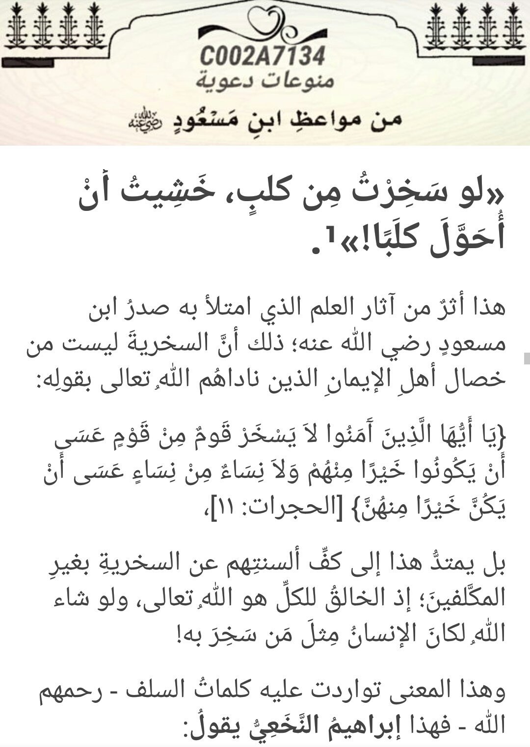 الزاخري No Twitter حفظ اللسان عن السخرية والاستهزاء بالآخرين ابن مسعود Https T Co Unnitd12id همي آخرتي داعم للخير س م و للخير نداء الخير غرد واذكر ربك يازين ذكر الله ومضة حرف مداد الكلمات قروب الهمم العاليه لاجل الجنه طيب أثرك