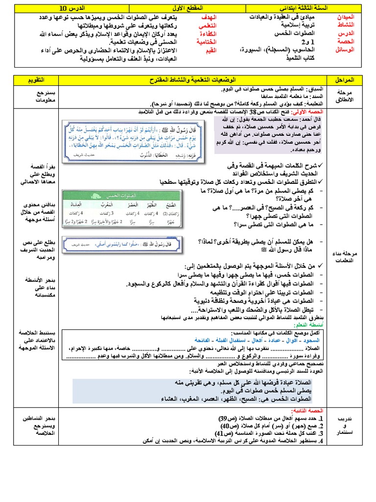 تربية إسلامية س5 الص لاة أوقاتها و كيفي ة أدائها دليل المعلم