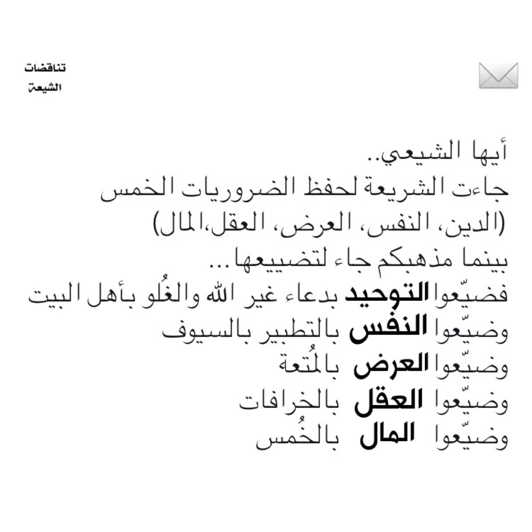O Xrhsths تناقضات Sto Twitter ماذا قدمو الشيعه للاسلام قاموا بتضييع الضروريات الخمس التي جاءت الشريعة لحفظها الدين النفس العرض العقل المال Https T Co Gzo9g89b1e