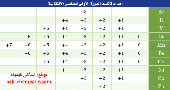 العناصر الانتقالية الفلزات الانتقالية في الجدول الدوري مصادر الكيمياء