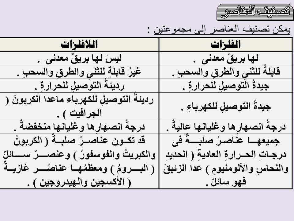 خصائص الفلزات واللافلزات قلمي