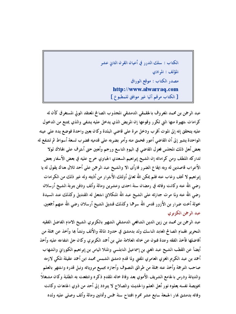 سلك الدرر في أعيان القرن الثاني عشر 003