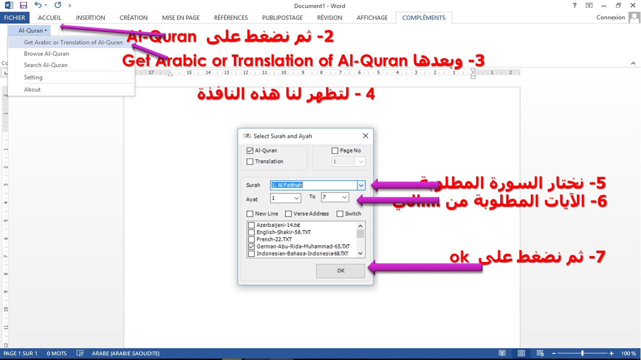 أداة إدراج القرآن بالرسم العثماني لورش ببرنامج الوورد Word Quran Addin With Warsh Othmani Format Youtube