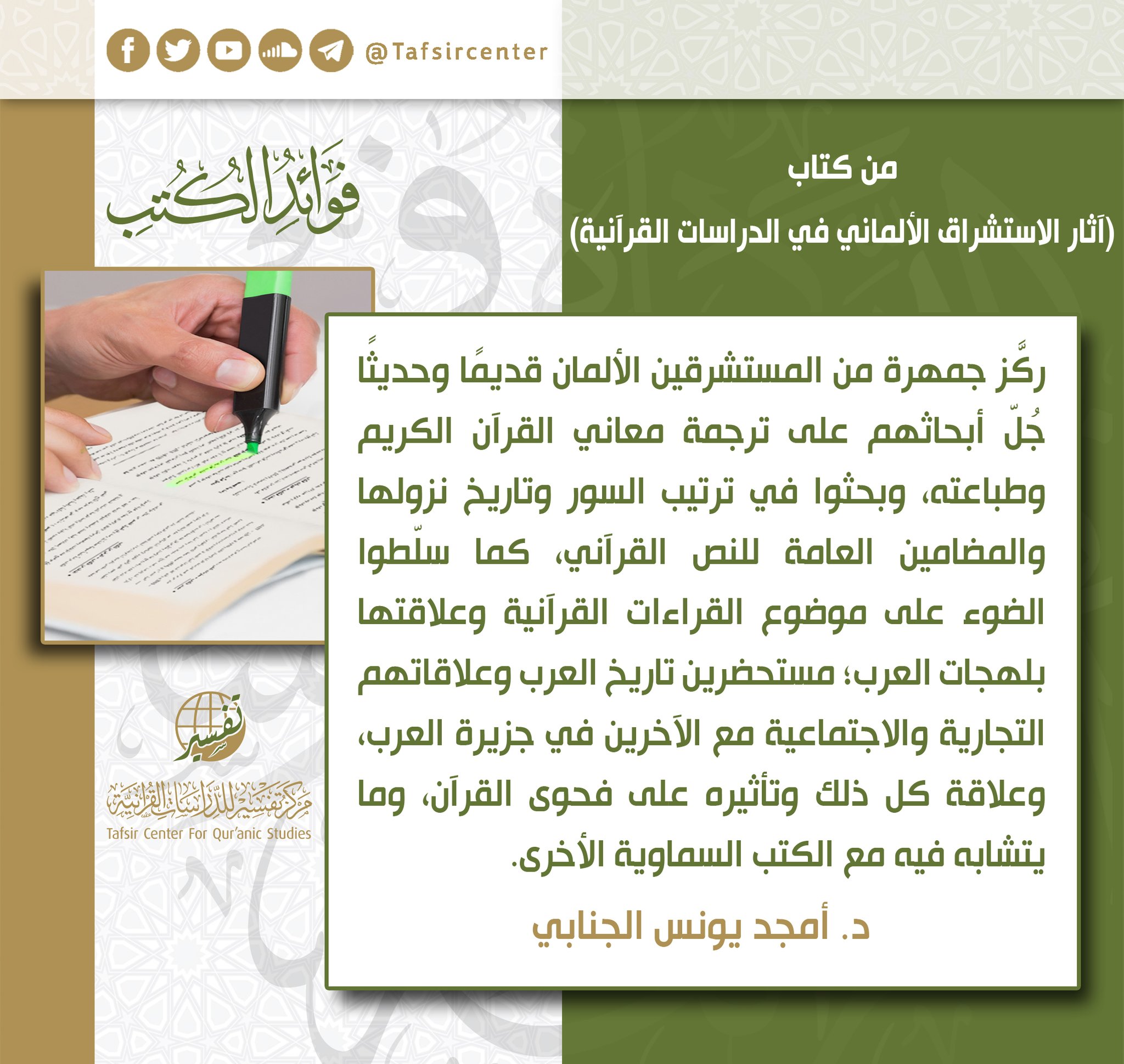 مركز تفسير للدراسات القرآنية Pa Twitter فوائد من كتاب آثار الاستشراق الألماني في الدراسات القرآنية تأليف د أمجد يونس الجنابي فوائد الكتب مركز تفسير