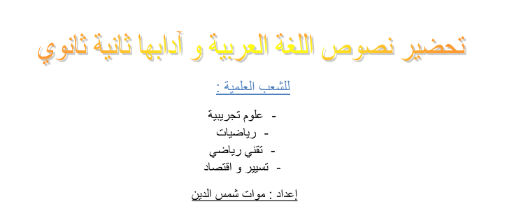 تحضير نصوص اللغة العربية للسنة الثانية ثانوي