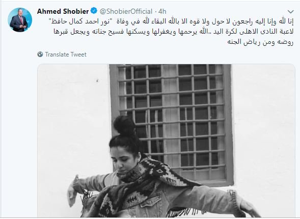 شوبير ناعيا لاعبة يد الأهلي الله يرحمها ويغفرلها ويسكنها فسيح جناته
