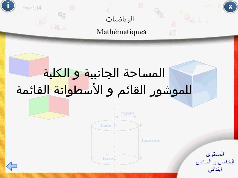 الموشور القائم والأسطوانة القائمة المساحات الجانبية والكلية للمستوى السادس ابتدائي