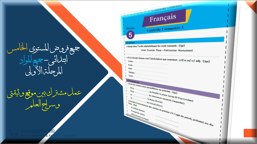 جميع فروض المرحلة الثانية للمستوى الخامس ابتدائي فرنسية وعربية بحلة رائعة سلك الابتدائي