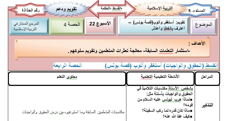 لأساتذة المستوى الخامس ابتدائي جذاذات التربية الإسلامية المنهاج الجديد موقع الأساتذة والتلاميذ للتعليم عن بعد