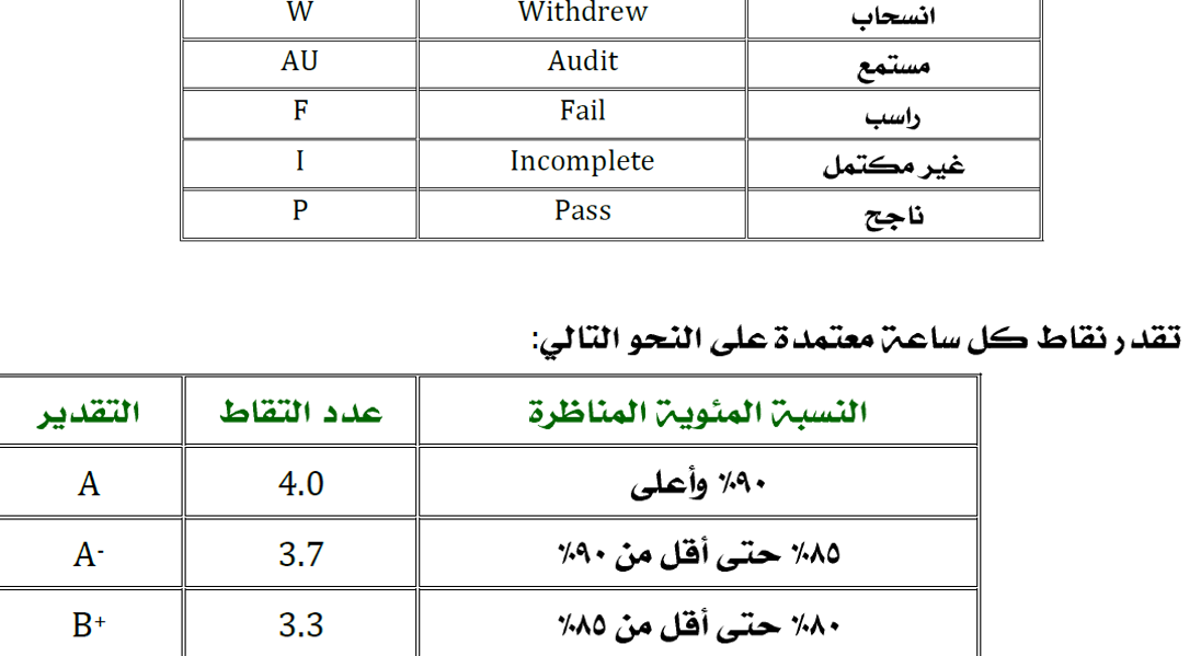 نظام تقدير العلامات و المعدلات لدرجتي البكالوريوس و الماجستير