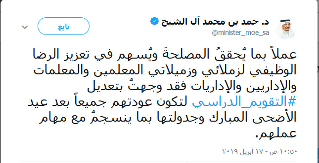 السعودية عودة المعلمين والإداريين جميعا بعد عيد الأضحى 1440 1442 هـ