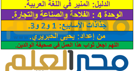 جذاذات الوحدة الرابعة المنير في اللغة العربية المستوى الرابع ابتدائي سلك الابتدائي