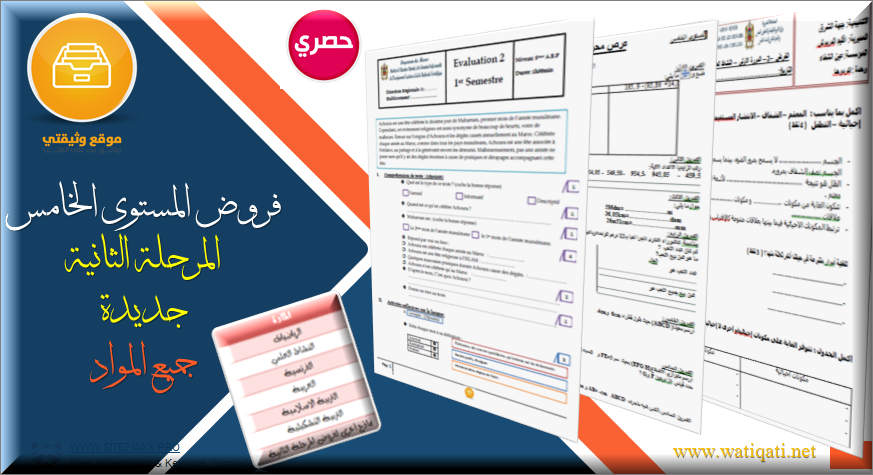 فروض المرحلة الرابعة للمستوى الخامس ابتدائي في حلة جديدة وجاهزة للطباعة
