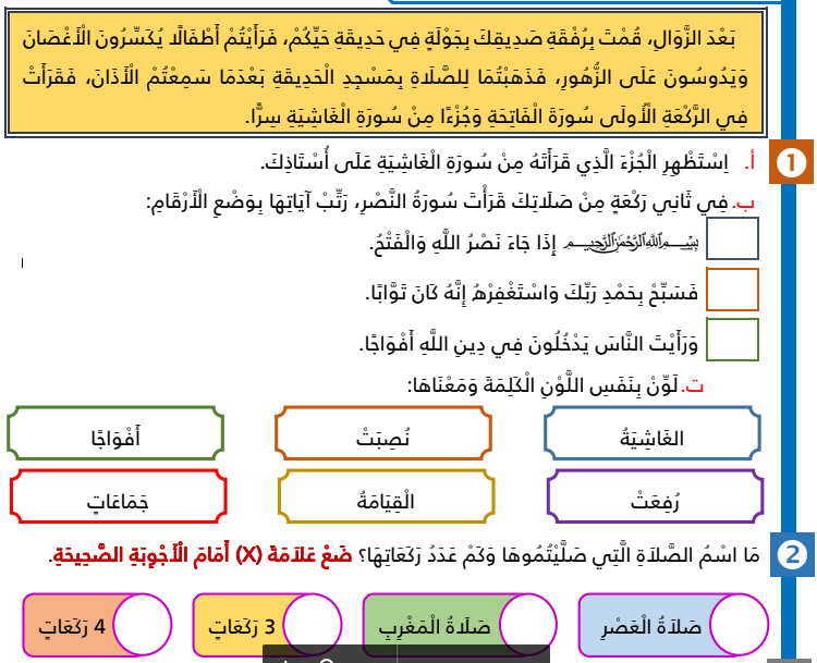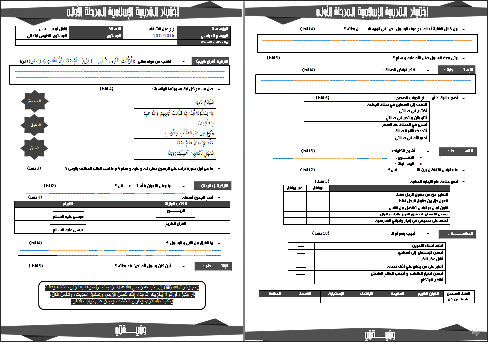 الفرض الأول للدورة الثانية في مادة التربية الإسلامية للمستوى الخامس ابتدائي وفق المنهاج المراجع الجديد