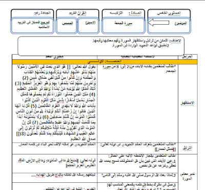 فرض التربية الإسلامية وفق المنهاج المنقح المستوى الخامس