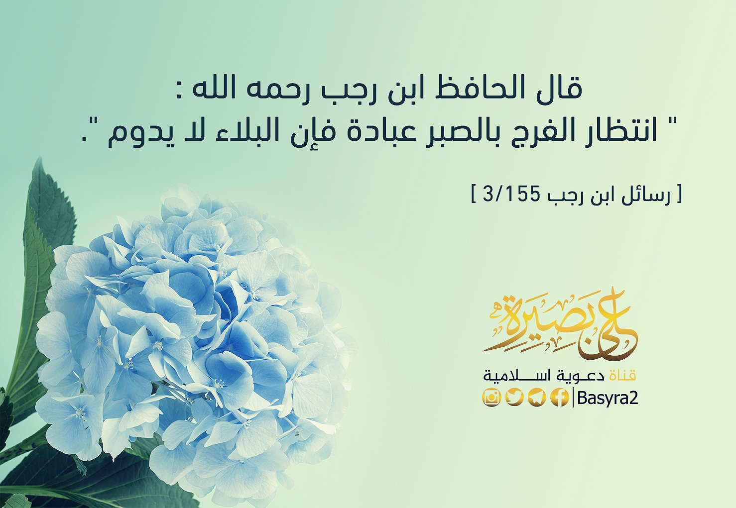 على بصيرة On Twitter قال الحافظ ابن رجب رحمه الله انتظار الفرج بالصبر عبادة فإن البلاء لا يدوم رسائل ابن رجب ١٥٥ ٣ على بصيرة Https T Co Nbqvgwutra