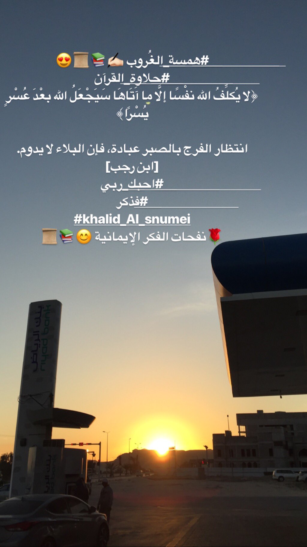 خالد السنمي No Twitter همسة الغ روب حلاوة القرآن لا ي كل ف الله نف س ا إل ا ما آ ت اه ا س ي ج ع ل الله بع د ع س ر ي س ر ا انتظار الفرج بالصبر عبادة فإن البلاء لا يدوم ابن رجب احبك ربي فذكر Khalid Al Snumei