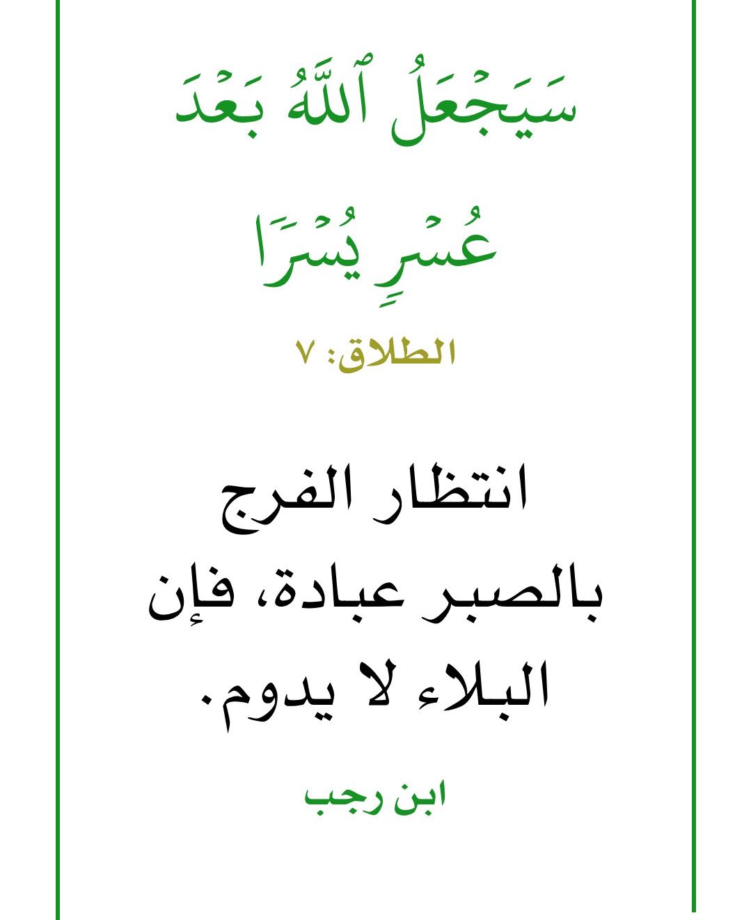 Uzivatel حمود العتيبي Na Twitteru س ي ج ع ل ٱلل ه ب ع د ع س ر ي س ر ا قال الحافظ ابن رجب رحمه الله انتظار الفرج بالصبر عبادة فإن البلاء لا يدوم الجمعة دعوة مستجابة Https T Co Audizacxou