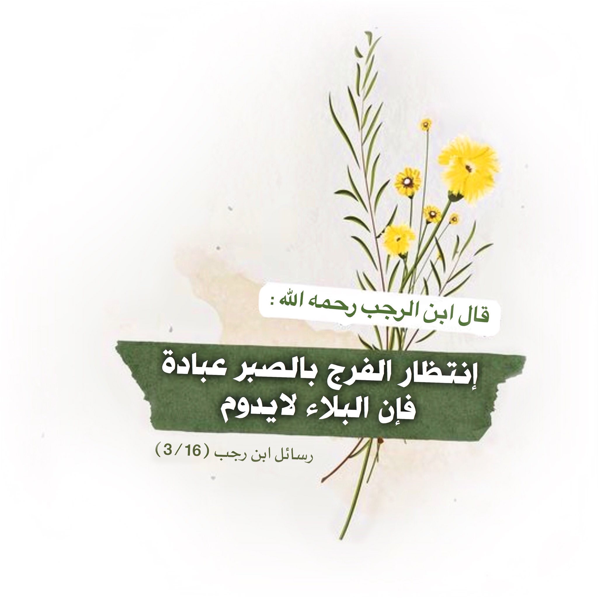 ارتسامات No Twitter قال ابن رجب رحمه الله انتظار الفرج بالصبر عبادة فإن البلاء لا يدوم مجموع رسائل ابن رجب ٣ ١٦