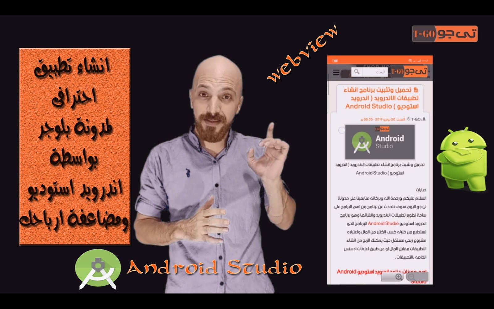 انشاء تطبيق احترافى لموقعك او مدونة بلوجر مجانا 2019 Webview باستخدام اندرويد استوديو تى جو للمعلوميات التقنيه