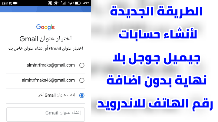 انشاء حسابات جيميل جوجل بدون رقم الهاتف للاندرويد