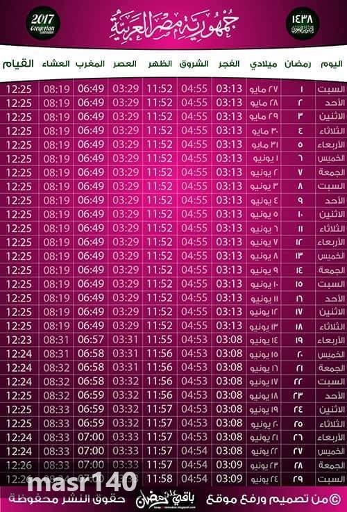 امساكية شهر رمضان 2017 موعد بداية شهر رمضان 1438هـ موعد اول ايام عيد الفطر المبارك موجز مصر
