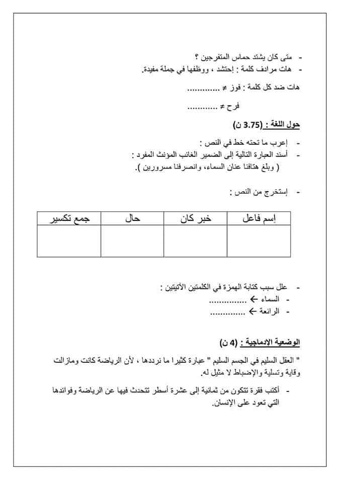 اختبارات الفصل الثاني السنة الرابعة ابتدائي المجموعة الثانية 2020