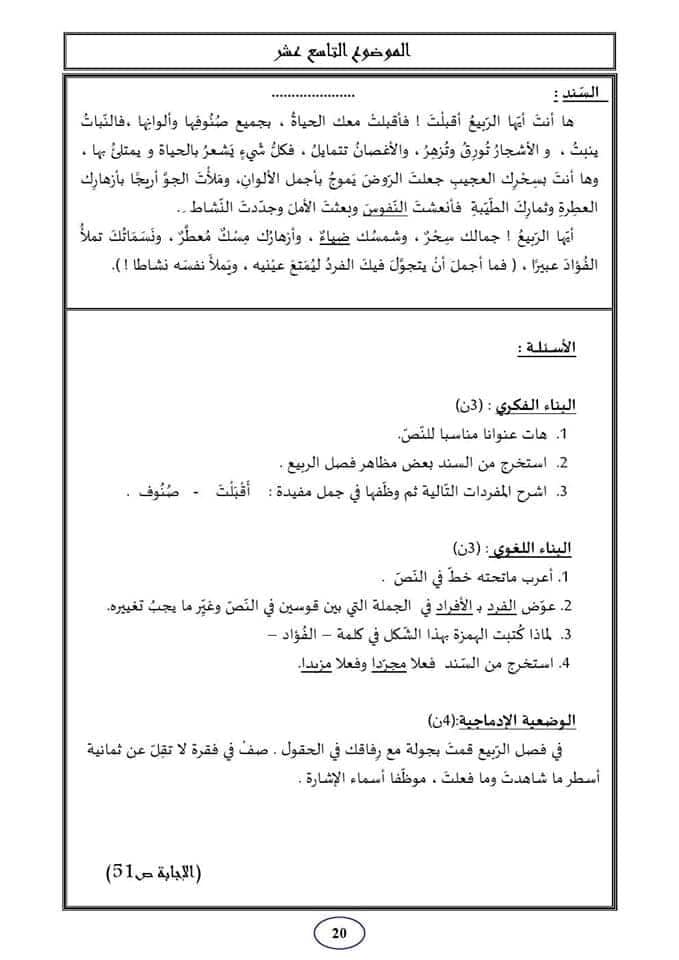تحضير لشهادة التعليم الابتدائي 2020 مواضيع اللغة العربية المجموعة السادسة
