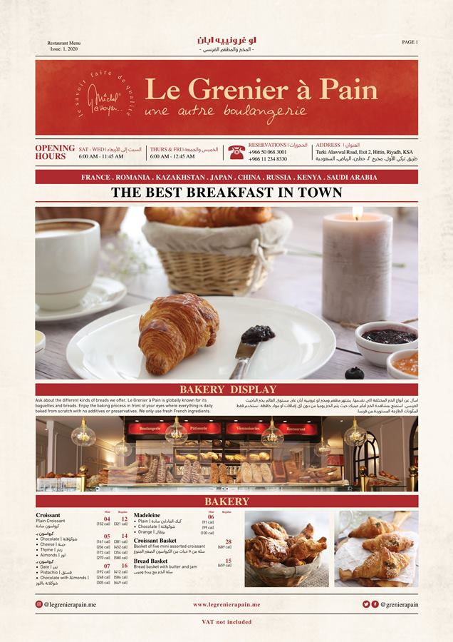 منيو مطعم ومخبز وكافيه لو غرونييه أبان وارقام التواصل