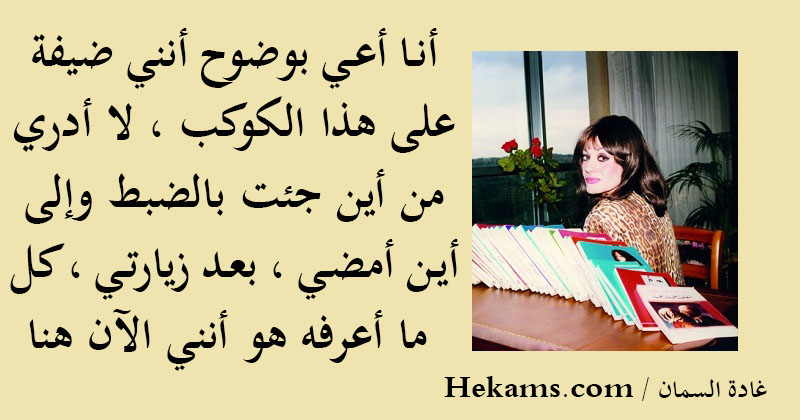 أنا أعي بوضوح أنني ضيفة على هذا الكوكب لا أدري من أين حكم