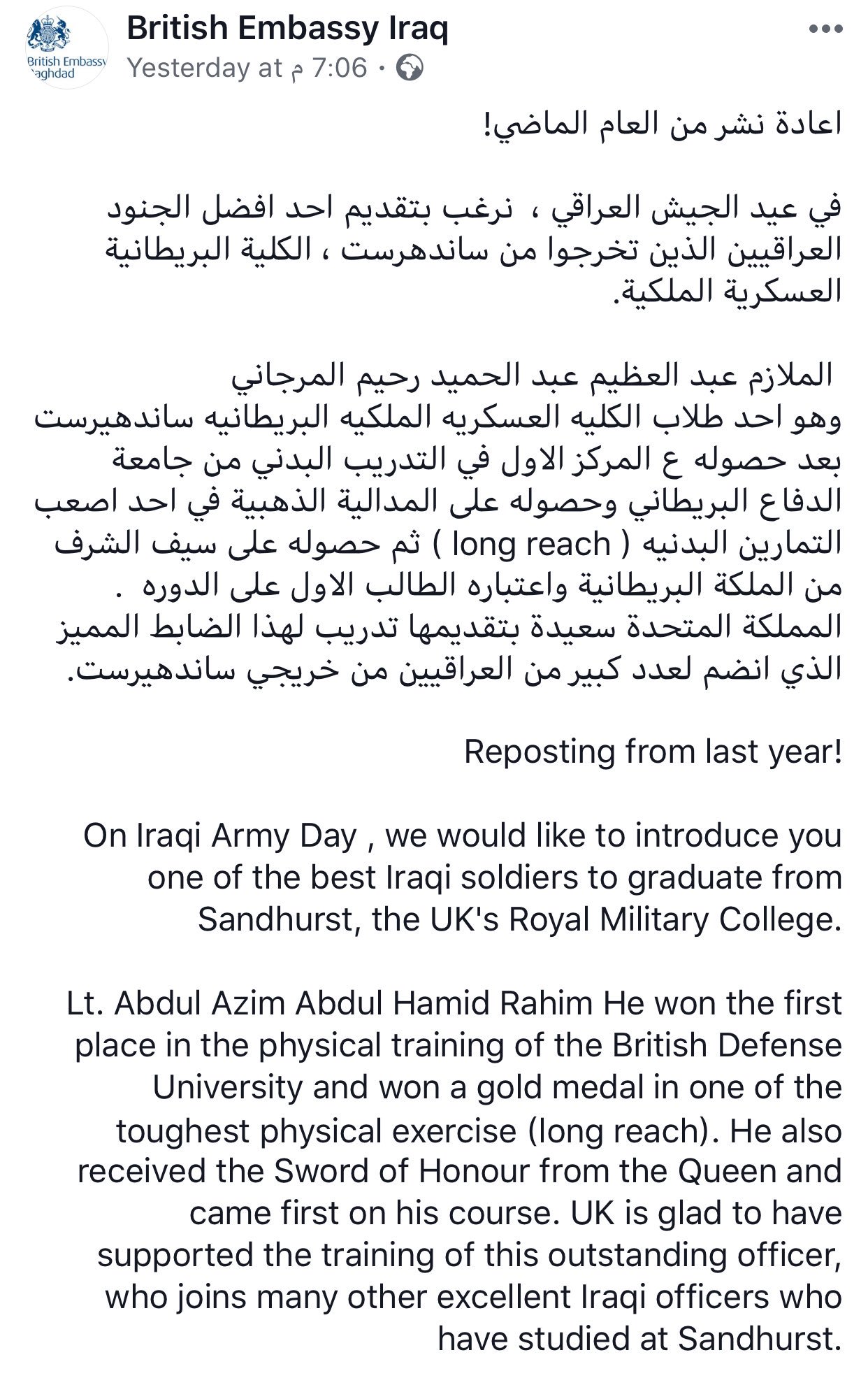 بغداد Pa Twitter نجمة في سماء العراق العظيم ومثال يحتذى به الملازم البطل عبد العظيم عبد الحميد خريج الكلية العسكرية الملكية البريطانية ساندهيرست وبتفوق هذا مانشرته سفارة المملكة المتحدة علي صفحتها الرسمية