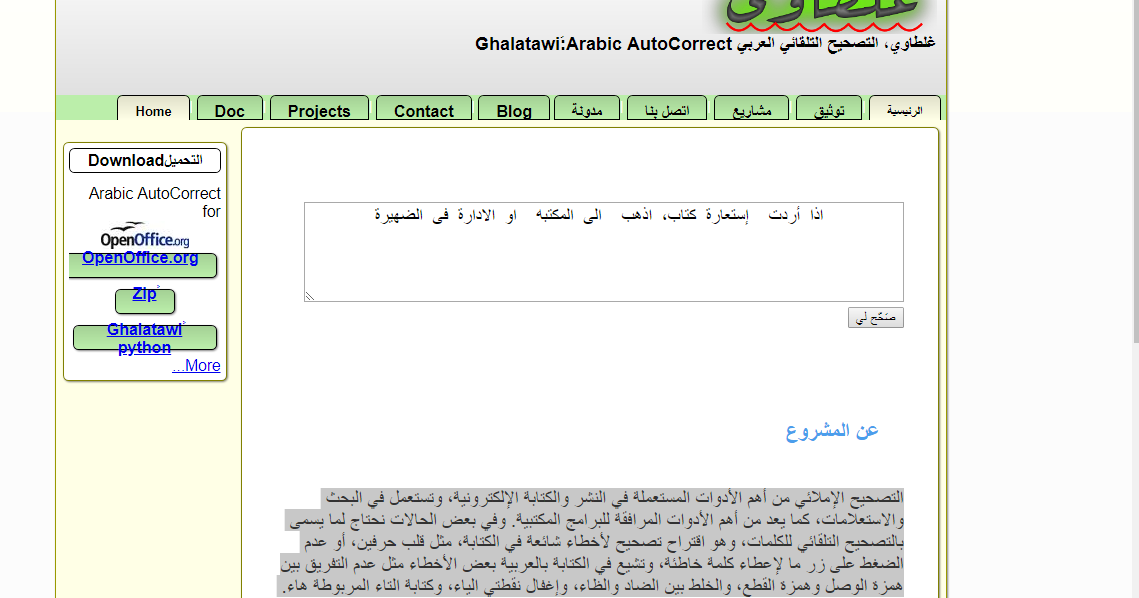 مدقق من المواقع المتميزة أيضا في مجال تصحيح الأخطاء الإملائية وذلك لأنه يضم عدد كبير جدا من الخبراء في اللغة العربية مما يجعل المعلومات التي يعتمد عليها. التدقيق الإملائي والتدقيق النحوي على الإنترنت مجانا. R هو اداة مجانية ذكية للتدقيق الإملائي والمدقق النحوي الذي يعمل في ميكروسوفت اوفيس microsoft office 2003 2007 2010 يعمل على متصفحات إنترنت إكسبلورر وفايرفوكس وجوجل كروم. تطوير برمجية عربية مفتوحة المصدر تعمل على الانترنيت وتمك ن المستخدم العربي من تصحيح الأخطاء الإملائية التي يقع فيها وهو يكتب نصوصا عربية على شبكة الانترنيت.